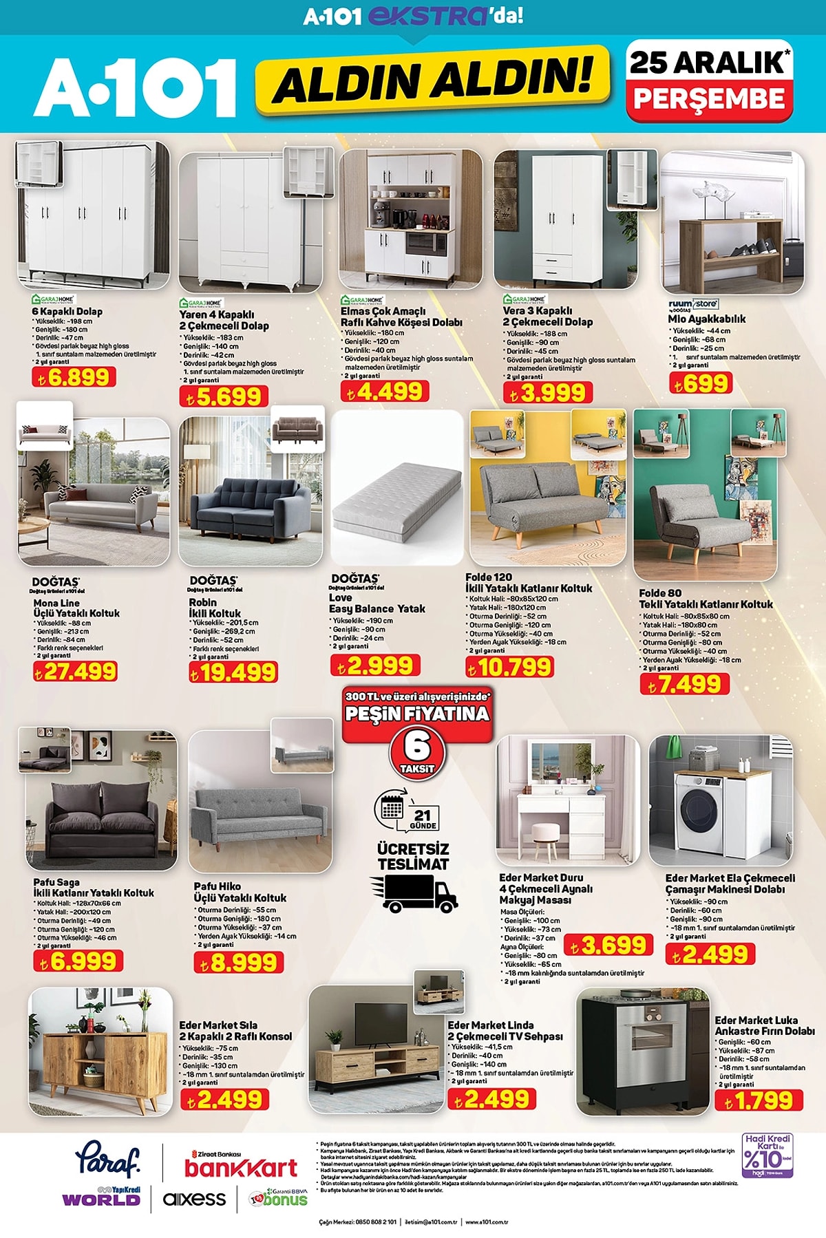 A101, 25 Aralık 2025 tarihli İnternete Özel Aldın Aldın kataloğunu duyurdu. Sadece a101.com.tr üzerinden erişilebilen kampanya, yıl bitmeden alışveriş yapmak isteyenler için cazip seçenekler sunuyor.